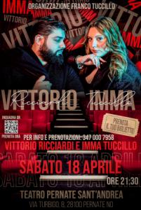 INSIEME SUL PALCO - E ora, dopo una prima esibizione a Musica Nova, Vittorio e Imma sono di nuovo insieme. «Vogliamo dimostrare che la musica non deve essere scontro tra colleghi ma unione perché fa bene al cuore». Sabato 18 aprile al Teatro Sant’Andrea di Pernate proporranno il loro repertorio, unendo le due voci nel momento finale. A condurre la serata sarà il comico Mauro Villata: ospite speciale dell’evento il rapper napoletano Luca Blindo che presenterà alcuni suoi pezzi e condividerà il palco con Imma cantando i loro duetti (uno è già presente su YouTube, “Non ci importa”) mentre la presenza delle ballerine saprà creare la giusta coreografia all’evento. Le sorprese non mancheranno di sicuro. Perché «per l’amore usciamo pazzi. Raccontandone tutte le sfaccettature». Parola di Vittorio e Imma.