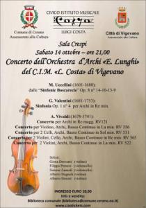 Cerano - Il 14 ottobre si alza nuovamente il sipario in Sala Crespi. Nell'occasione a calcare il palco del nostro auditorium sarà l’Orchestra d’Archi «E. Lunghi» del conservatorio «L. Costa» di Vigevano. La formazione, attiva da ottobre 2016, è composta interamente da allievi interni alla scuola ed eseguirà un repertorio di musiche barocche con brani di Marco Uccellini, Giuseppe Valentini e Antonio Vivaldi. Sarà l'occasione per avviare la programmazione 2017/2018, in fase di definizione e che già prevede l'11 novembre l'ormai tradizionale appuntamento con il Brotherhood Gospel Choir diretto da Paolo Viana che, anche quest'anno, sarà legato alla lotta al femminicidio, devolvendo l'incasso a progetti patrocinati dalla Provincia. La stagione musicale proseguirà poi a marzo con il coro "LE VOCI BIANCHE DI NOVARA", ad aprile con la "SCHOLA CANTORUM SAN GREGORIO MAGNO" di Trecate, per concludersi a giugno con gli "ALTERATI IN CHIAVE". Novità di quest'anno sarà la prosa, con tre spettacoli: 25 novembre MEMORIE DI UN IRRESISTIBILE LIBERTINO (Groucho Marx); 17 febbraio AMADEUS (Peter Shaffer); 12 maggio IL PRINCIPE FELICE (omaggio ad Oscar Wide). Non mancheranno, inoltre, gli eventi legati alle ECCELLENZE SPORTIVE e alla GIORNATA DELLA MEMORIA.