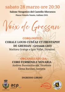 Galliate - Il Coro Femminile Novaria è lieto di invitarvi presso la suggestiva Sala Neogotica del Castello Sforzesco di Galliate (NO), per uno straordinario scambio culturale con la Corale Louis Cunéaz et Frustapot de Gressan (AO). Una serata di "armonie incrociate": un viaggio musicale che unisce territori e tradizioni diverse nella cornice senza tempo del castello. Un’occasione unica per vivere l'incontro tra la polifonia novarese e la tradizione corale della Valle d'Aosta. Appuntamento per sabato 28 marzo alle ore 20.30 nello splendido scenario del Castello Sforzesco di Galliate. Ingresso libero e gratuito.