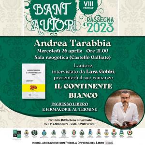 Galliate - Prossimo appuntamento, mercoledì 26 aprile a Galliate, sarà la volta di Andrea Tarabbia e il suo Continente bianco, pubblicato da Bollati Boringhieri, introdotto da Lara Gobbi. Nato a Saronno nel 1978, vive a Bologna insieme alla moglie e ai due figli. Dal 2006 al 2012 ha fatto parte della redazione della rivista Il primo amore. Ha collaborato alle riviste L'Indice dei libri del mese, IL, Vanity Fair, Liberazione e Playboy. Nell'ottobre del 2016 vince il "Premio Letterario Alessandro Manzoni - Città di Lecco" con il romanzo Il giardino delle mosche: vita di Andrej Čikatilo, con cui è entrato anche nella Selezione Premio Campiello del 2016. È stato redattore del sito di promozione della letteratura italiana all'estero Books in Italy. Insegna scrittura e narrazione alla Scuola Holden a Torino. Con Madrigale senza suono ha vinto nel 2019 la 57ª edizione del Premio Campiello. Nel dicembre 2021 è diventato cittadino onorario della città di Gesualdo (AV). Nel 2022 esce Il continente bianco, per chi è avvezzo alla letteratura italiana contemporanea sa che i personaggi sono i protagonisti dell’incompiuto romanzo L’odore del sangue di Goffredo Parise. Andrea Tarabbia parte da questo romanzo per scriverne uno totalmente nuovo, con una prospettiva diversa in cui lui stesso si fa personaggio, insieme a uno psicologo che nel libro è appuntato come dottor P*, sua moglie Silvia e un affascinante giovane di estrema destra. Un’immersione nel mondo dei neofascisti romani, colmo di odio calmo e razionale.Lo scrittore immagina che un personaggio, che ha il suo stesso nome, fa lo scrittore e va in analisi dal dottor P. Dal dottore viene a sapere che la moglie di lui, Silvia, ha un giovane amante, Marcello Croce, legato a un gruppo di facinorosi di estrema destra. Tarabbia entra in contatto con il gruppo, che si fa chiamare "Il continente bianco". Ammesso alle loro riunioni, ascolta le loro orazioni farneticanti e partecipa persino a un’aggressione contro dei venditori stranieri, mentre Silvia si assoggetta morbosamente sempre di più ai voleri di Marcello. Il romanzo diventa così una cronaca, nella quale lo scrittore stesso si trova a fare esperienza della violenza e dell’abominio, sentendosi sempre un po’ dentro e sempre un po’ fuori dagli eventi cui partecipa. Andrea Tarabbia con questo romanzo getta luce su aspetti poco esplorati della contemporaneità italiana e lo fa attraverso una chiave letteraria e metaletteraria, portando avanti la sua indagine sul tema del Male, di chi lo compie e di chi lo testimonia.