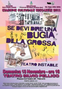 Trecate - Si alza il sipario al Teatro Pellico in piazza Cattaneo. Domenica 13 novembre alle 16 viene proposta la commedia “Se devi dire una bugia, dilla grossa”, a cura del Teatro Instabile. Il costo di ciascun biglietto è di 8 euro. Per ulteriori informazioni è a disposizione l’Ufficio Cultura del Comune (tel. 0321 776364) oppure la biglietteria del Pellico aperta il mercoledì mattina e il venerdì e sabato pomeriggio (cell. 345 4554937) - www.teatrosilviopellico.it.