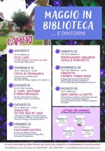 Sempre a maggio, e sempre in Biblioteca, continuano le letture per bambini, a prenotazione obbligatoria presso la Biblioteca: sabato 4 alle ore 10 (7-11 anni), sabato 11 alle ore 11 (3-6 anni, in inglese), martedì 14 alle ore 16:30 (3-6 anni) e sabato 25 alle ore 10 (1-3 anni).