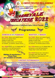 Trecate - Tutto pronto per il Carnevale Trecatese che ritorna dopo due anni (nel 2020 ci fu solo una domenica di festa, poi tutto bloccato per la pandemia). L'appuntamento, organizzato dal Comitato trecatese per il Carnevale con la vivace collaborazione della Pro Loco Trecate, è per le ore 15 di domenica 27 febbraio per il ritrovo dei carri allegorici in piazza Cavour. Previsto un circuito con ingresso libero e obbligo di Green Pass che da piazza Cavour porta a via F.lli Russi, via Cassano, via Gramsci e ancora piazza Cavour da ripetere più volte; sempre in piazza musica e animazione con il dj Grace Sciò e animazione a cura dell'associazione Happy Days centro studi-danza. Lo stesso si ripeterà alle ore 15 di martedì 1° marzo.