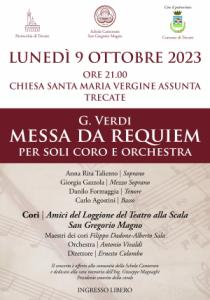 Trecate - Torna la grande musica con la Schola cantorum “San Gregorio Magno”. Torna per ricordare affettuosamente alla comunità trecatese la figura di Giuseppe Magnaghi, sindaco della città negli anni Novanta e presidente emerito della corale trecatese, scomparso lo scorso luglio. Si terrà alle 21 del prossimo lunedì 9 ottobre l’esecuzione della “Messa da requiem per soli coro e orchestra” di Giuseppe Verdi. L’iniziativa, ospitata dalla chiesa parrocchiale grazie alla disponibilità della Parrocchia di Santa Maria Vergine Assunta, è patrocinata dalla Città di Trecate. Insieme con i cori “San Gregorio Magno” e “Amici del Loggione del Teatro alla Scala” diretti da Filippo Dadone e Alberto Sala, si esibiranno il soprano Anna Rita Taliento, il mezzo soprano Giorgia Gazzola, il tenore Danilo Formaggia, il basso Carlo Agostini e i musicisti dell’orchestra “Antonio Vivaldi” diretta da Ernesto Colombo. L’evento è a ingresso libero.
