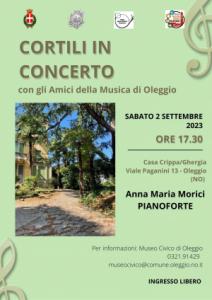 Oleggio - Sabato prossimo 2 settembre con inizio alle ore 17.30 si terrà a Oleggio presso la Casa Crippa/Ghergia situata in viale Paganini, 13 il secondo appuntamento della rassegna “cortili in concerto” promossa dal Comune di Oleggio nell’ambito della programmazione, a cura dell’Assessorato alla Cultura, dell’ “Estate oleggese 2023”. Protagonista del concerto sarà la pianista Anna Maria Morici, che è nata a Calcutta, ma presto si è trasferita in Italia e a soli 19 anni ha ottenuto il diploma con il massimo del voti e la lode presso il Conservatorio di Palermo e quindi ha conseguito presso il Conservatorio Cantelli di Novara la laurea specialistica di 2° livello. Anna Maria Morici ha poi perfezionato gli studi a Roma all’Accademia di Santa Cecilia e a Monaco di Baviera. Ha vinto numerosi e importanti concorsi pianistici. Attualmente oltre che proseguire nella sua carriera di concertista, sia come solista sia con formazioni strumentali, si occupa anche di insegnamento ed è docente presso istituti musicali in Piemonte e Lombardia. Il programma che verrà presentato è incentrato su brani struggenti di Chopin, Mendelssohn, Schumann, con i loro famosissimi “notturni” che nella prima metà dell’ 800 erano richiesti in tutta Europa. L’atmosfera che dunque si andrà creando nel corso del concerto discende anche dalla poesia del “cielo stellato” tanto caro a Pablo Neruda - premio Nobel per la letteratura nel 1971 - che nel corso dello svolgimento del programma verrà evocato con qualche breve accenno alle sue magnifiche liriche.