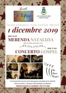 Trecate - Domenica 1° dicembre in teatro comunale l’associazione Sportello Vita, con il patrocinio del Comune di Trecate, organizza un piacevole pomeriggio: alle 16.30 verrà offerta una “Merenda natalizia” seguita dal concerto del gruppo gospel “No Name Singers”. L’evento è finalizzato a sostenere i progetti a supporto dei malati oncologici che lo Sportello Vita promuove ed è a prenotazione obbligatoria: ci si potrà recare alla sede di via Fratelli Russi 1 o telefonare al numero 370 3177666 entro giovedì 28 novembre per passare un pomeriggio in compagnia ascoltando buona musica e per sostenere gli scopi dell’associazione.