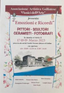 Galliate - L'Associazione Artistica Galliatese "Amici dell'Arte" presenta: Emozioni e Ricordi, mostra espositiva dal 17 al 19 marzo prossimi presso il Castello Visconteo Sforzesco di Galliate. Un'esposizione dedicata a pittori, scultori, fotografi e ceramisti; ci sono opere di: Antonio Baldi, Giuseppina d'Ambrogio, Domenica Nava, Gian Mario Portoni, Gianni Longhin, Miriam Pivani e Sergio Salsa. Ingresso libero; apertura al mattino ore 10-12 e pomeriggio ore 15-19.
