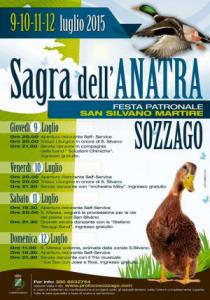Sozzago - Entra nel vivo a Sozzago la Sagra dell'Anatra, la festa Patronale in onore di San Silvano, organizzata dalla Pro Loco in collaborazione con il Comune. Dopo il debutto di giovedì 9 luglio con l'apertura del ristorante self-service e l'esibizione in piazza della band Soluzioni Chimiche; venerdì 10 si comincia alle 20 al ristorante self-service e alle 21.30 serata danzante con l'Orchestra Miky. Sabato 11 si aprono le cucine alle 19.30 e alle 20 messa cui seguirà la processione per le vie del paese con San Silvano; alle 21.30 grande ospite la Stefano Teruggi Band. Infine domenica 12 messa solenne alle 11 animata dalla corale S. Silvano; alle 19.30 apertura ristorante self-service e alle 21.30 serata di musica e balli in compagnia del trio musicale Joe Sax con Jose e Rosi. Ciascun concerto è ad ingresso libero e gratuito. In caso di maltempo la manifestazione si tiene sotto gli appositi tendoni; tutta l'area è completamente coperta. Tutte le sere specialità a base di anatra e del territorio. Per ulteriori informazioni www.prolocosozzago.com oppure cell. 380 6832754.