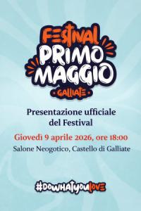 Galliate - L’Amministrazione comunale di Galliate invita la cittadinanza e gli organi di informazione alla presentazione ufficiale del Festival Primo Maggio 2026, in programma giovedì 9 aprile alle ore 18 presso il Salone Neogotico del Castello di Galliate. Nel corso dell’incontro saranno illustrati i contenuti, lo spirito e le principali novità dell’edizione 2026, che quest’anno raddoppia con due giornate di appuntamenti previste per l’1 e il 2 maggio, tra musica, spettacolo e buona cucina. La presentazione sarà un momento aperto alla comunità per condividere un progetto che punta a coinvolgere giovani, famiglie e cittadini, valorizzando partecipazione, socialità e territorio. Ulteriori dettagli relativi al programma del festival saranno presentati nel corso della conferenza stampa.