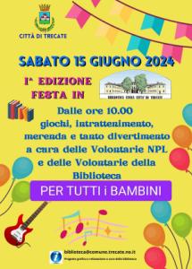 Trecate - Prima edizione della “Festa in Biblioteca”: il prossimo 15 giugno "si terrà – come riferiscono il sindaco Federico Binatti e l’assessore alla Biblioteca civica Fortunata Patrizia Dattrino – si terrà, a partire dalle 10, un evento dedicato a tutti i bambini e ai ragazzi trecatesi che frequentano il nostro servizio per motivi di studio, ma anche per la grande passione per la lettura e per tutte le iniziative culturali e promozionali che l’Amministrazione ha organizzato e organizzerà per avvicinare le giovani generazioni alla Biblioteca".