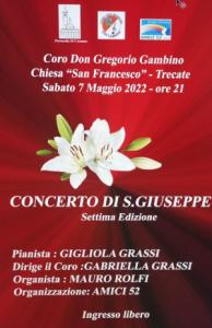 Quest’ultima edizione del concerto di San Giuseppe offre un programma impegnativo e vario, capace di dare emozioni e spunti di riflessione. Il Coro Don Gambino vi dà quindi appuntamento a sabato 7 maggio. Al pianoforte accompagna Gigliola Grassi, all'organo Mauro Rolfi; dirige Gabriella Grassi. L'organizzazione è a cura del gruppo Amici 52. L'ingresso è libero e gratuito.