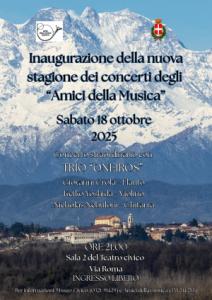 Oleggio - Sabato 18 ottobre con inizio alle ore 21 presso la sala 2 del Teatro comunale di via Roma (vicinissimo alla stazione ferroviaria, con ampi parcheggi liberi) gli Amici della Musica di Oleggio inaugureranno la nuova stagione 25/26 con un concerto straordinario per il quale si esibirà una formazione strumentale appositamente costituita per questa occasione. E’ la prima volta che il sodalizio oleggese, ormai al 60° anno di vita dalla fondazione, presenta una serata di questo tipo con un Trio a cui è stato dato il nome di “Oneiros”, composto da Giovanni Crola al flauto traverso, Koiko Yoshida al violino e Nicholas Nebuloni alla chitarra. Verrà presentato un programma molto interessante con brani di Autori ottocenteschi per finire con la famosa “Ouverture della Gazza ladra” di Rossini che per anni ha fatto parte dei programmi della Banda Filarmonica della Città di Oleggio. Sono inoltre in particolare da segnalare la celebre “Sonata n. 1 in la minore” di Paganini, il “Trio op.9 n.3” di J.Kreutzer (siamo nei primi anni dell’800) e il “Gran Duo concertante in la maggiore” di Mauro Giuliani, musicista importante, nato a Bisceglie verso la fine del ’700 e morto a Napoli quando non aveva ancora 50 anni ma che compose diverse centinaia di brani, tutti di notevole qualità. Naturalmente nel corso della serata verranno date informazioni circa il programma dei concerti e delle attività previste per il prossimo anno.