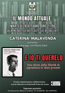 Galliate - A Galliate martedì 28 ottobre alle ore 21 presso la Sala Neogotica del Castello Visconteo-Sforzesco, l’avvocata e giurista Caterina Malavenda, in dialogo con il consigliere comunale Paolo Gatti, presenterà il volume "Io ti querelo. Una storia della libertà di espressione in dieci processi", edito da Marsilio Editori nel 2025. Attraverso dieci casi giudiziari emblematici seguiti in prima persona, l’autrice traccia un percorso originale e profondo nel cuore del diritto all’informazione, tra libertà di stampa, diffamazione, satira e opinione pubblica. Un’opera che non è soltanto una raccolta di vicende giudiziarie, ma una riflessione critica su quanto sia fragile e al tempo stesso essenziale il diritto a dire (e a scrivere) la propria opinione in una società democratica.
