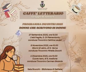 L’attività del gruppo di lettura proseguirà fino al mese di aprile 2026, con incontri a cadenza mensile, che si terranno il sabato, alle ore 10, presso la Sala Stucchi della Biblioteca Comunale di Galliate.