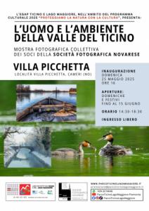 Cameri - Da tempo immemorabile la Valle del Ticino rappresenta uno straordinario contenitore naturale, con una particolare biodiversità, in cui la presenza umana è profondamente radicata. A questo luogo, da osservare attraverso mille lenti e sguardi diversi, è dedicata la mostra fotografica “L’uomo e l’ambiente della Valle del Ticino”, collettiva dei soci della Società Fotografica Novarese, che sarà inaugurata domenica 25 maggio alle ore 16 presso Villa Picchetta (Cameri). La mostra sarà visitabile le domeniche e giorni festivi, dalle ore 14.30 alle ore 18.30, fino a domenica 15 giugno. L’ingresso è libero.