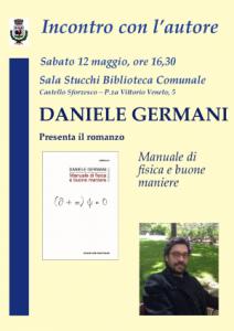 Galliate - Nuovo "Incontro con l'autore" che avrà luogo il prossimo sabato 12 maggio, alle ore 16.30 presso la Sala Stucchi della BIblioteca comunale, con la presenza di Daniele Germani che presenterà il suo romanzo "Manuale di fisica e buone maniere".