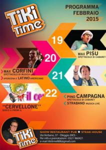 Oleggio - Settimana di grandi appuntamenti al Tiki Time, il locale di Max Cavallari e Sasha, in via Verbano ad Oleggio. Il divertimento si apre giovedì sera, 19 febbraio, con lo spettacolo del cabarettista Max Pisu direttamente da Zelig. Si prosegue venerdì 20, con la musica live di Max Corfini, ex New Trolls, e l'apericena con latino americano al piano superiore del locale. Sabato 21 febbraio arriva Pino Campagna (cena a 25 euro) con il suo spettacolo di cabaret, mentre nell'altra sala si esibirà la Straband. Si conclude la settimana, come sempre, la domenica con il Gioco a premi multimediale, il “Cervellone”. La prossima settimana riprenderanno i laboratori di Zelig: il Tiki Time si trasforma in fucina artistica, luogo dove si formano e si esibiscono, alla presenza di grandi artisti del mondo del cabaret, aspiranti professionisti e professionisti stessi. Sul palco del locale di Max Cavallari, coordinati dallo stesso Max, approderanno una serie di giovani che manifesteranno la loro verve satirica e che saranno sottoposti al giudizio dei “big” di questo mondo certamente divertente, ma non facile. Imparare il mestiere, perfezionarsi, migliorare fino a quando il proprio pezzo non sarà perfetto. E allora, a quel punto, sì che si potrà realizzare il proprio sogno, la propria ambizione: quella di entrare nel salotto del cabaret per eccellenza, accanto alle stars del mondo del cabaret, quelle stesse star che ci sollevano dai pensieri quotidiani, e che ci regalano un po' di spensieratezza, che ci fanno ridere a crepapelle.