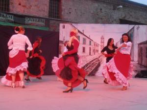 Trecate - Hanno ballato per più di un'ora e al termine sono state salutate da un applauso scrosciante. Un vero successo quello ottenuto dalle ragazze di MOVIDA Danza di Trecate, chiamate ad esibirsi in piazzetta Trepponti a Comacchio durante la Sagra dell'anguilla giunta alla sua XIV edizione. La manifestazione, molto sentita nella zona, e' stata organizzata dalla locale amministrazione comunale. Così, sabato 13 ottobre, Viviana Bognetti, Federica Zeiss, Silvia Barbieri e Raffaella Negri (direttrice artistica e coreografa del gruppo) sono state ospiti della cittadina in provincia di Ferrara con il loro spettacolo di flamenco puro. Le ragazze, infatti, si sono esibite in uno scenario splendido, totalmente gremito, ballando dapprima sulle note della musica…ma a stupire i presenti e' stato lo "Zapateado", coreografia eseguita solo con le percussioni ritmiche dei piedi. L'insegnante e coreografa del gruppo, Raffaella Negri, inoltre, ha allieve anche nella località di Chioggia, così, un pezzo e' andato in scena anche con le tre danzatrici locali Annamaria Padoan (organizzatrice e responsabile delle attività di Movida Danza a Chioggia), Barbara Tiengo, e la giovanissima Eleonora Setz. Lo spettacolo di flamenco e' stato ulteriormente arricchito dall'esibizione di Viviana Bognetti che ha cantato tre successi musicali (besame mucho, historia de un amor, el talisman). In piazzetta Trepponti si sono esibiti anche gruppi locali, a loro volta molto applauditi da un pubblico che ha mostrato di gradire l'intero programma.