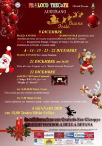 Si continuerà nelle settimane successive con l’apertura del mercatino natalizio nei giorni 14, 15, 21 e 22 dicembre e con spettacoli di magia, visita alle case di riposo, incontri con Babbo Natale, lanci di palloncini e la tombola della Befana per augurare nel migliore dei modi buone feste a tutti i trecatesi.