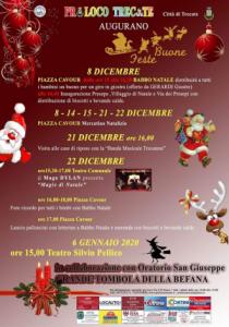 L’8 dicembre dalle 15 in piazza Cavour verrà inaugurato il mercatino natalizio, il Presepe, il Villaggio di Natale e la Via dei Presepi: Babbo Natale distribuirà a tutti i bambini un buono per un giro in giostra e saranno offerti biscotti e bevande calde a tutti i presenti. Si continuerà nelle settimane successive con l’apertura del mercatino natalizio nei giorni 14, 15, 21 e 22 dicembre e con spettacoli di magia, visita alle case di riposo, incontri con Babbo Natale, lanci di palloncini e la tombola della Befana per augurare nel migliore dei modi buone feste a tutti i trecatesi.