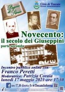 Trecate - Nell'ambito del progetto "Pagine di Storia", è in programma lunedì 17 maggio 2021 alle ore 17.30 l'incontro online "Novecento: il secolo dei Giuseppini - parte seconda". Franco Peretti, studioso di storia e autore di numerose ricerche e pubblicazioni riguardanti Trecate, parlerà della permanenza, durata un secolo, dei Padri Giuseppini, così importanti per tutta la comunità. L'incontro sarà trasmesso in diretta Facebook sulla pagina "TrecateInforma" e verrà moderato dal consigliere incaricato alla Cultura Patrizia Coraia.