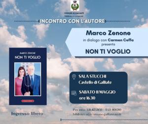 Galliate - Sabato 11 maggio, presso la Sala stucchi della Biblioteca comunale di Galliate, alle ore 16.30, Marco Zenone, in dialogo con Carmen Ceffa, presenterà il suo romanzo d’esordio Non ti voglio, pubblicato da Edizioni Effedì. 'Non ti voglio' racconta la storia d’amore tra Enzo, un ragazzo diabetico, e Arianna, una ragazza per la quale il diabete tipo 1 è una realtà sconosciuta. I due innamorati non potrebbero essere più diversi: Enzo, abituato a gestire la malattia in maniera rigida e quasi paranoica, si scontra con la leggerezza di Arianna e della sua famiglia, che invece non conoscono la patologia.