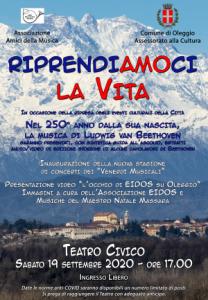 Oleggio - La prossima settimana - sabato 19 settembre con inizio alle ore 17 presso il Teatro comunale - la Città di Oleggio si “riprenderà la vita” dopo il difficile periodo degli ultimi mesi e le varie preoccupazioni che la pandemia del coronavirus ha destato in tutto il territorio. Lo farà nella maniera migliore, attingendo energie e forze per riprendere, dalla cultura ed in particolare dalla musica. Gli Amici della Musica della Città hanno infatti organizzato in collaborazione con l’amministrazione comunale uno straordinario concerto/spettacolo il cui titolo è “Riprendiamoci la vita” che segnerà la ripresa degli eventi culturali della Città. Il concerto si terrà con il rispetto di tutte regole e le cautele necessarie - igienizzazione, distanziamento – per poter passare un buon pomeriggio in tutta sicurezza. Come detto si inizierà alle ore 17.00 e si terrà al Teatro comunale situato in via Roma, a 100 metri dalla stazione ferroviaria, e vicinissimo al centro storico, ed è prevista la presenza della massime Autorità cittadine. Il programma comprende una parte di musica dal vivo - con la partecipazione del Quintetto Gaudenziano (pianoforte, oboe, fagotto, corno, clarinetto) formazione di giovani professionisti ormai avviati ad una carriera concertistica che non è difficile prevedere che darà ottime soddisfazioni – ed una parte dedicata a Ludwig van Beethoven in occasione del 250° anno dalla sua nascita. Questa seconda parte, che verrà svolta anche con una sintetica guida all’ascolto, sarà incentrata su estratti audio/video di alcuni capolavori del genio di Bonn registrati in edizioni storiche e “di culto”; si potranno così ascoltare, o riascoltare, Krystian Zimerman al pianoforte, Uto Ughi al violino, il celeberrimo “quartetto del Fidelio” del 1978 con la direzione di Leonard Bernstein con l’orchestra dei Wiener Staatsoper, e l’indimenticabile Claudio Abbado con i suoi Berliner Philharmoniker nell’ultimo movimento della Sinfonia n. 9. Sabato 19 settembre sarà anche l’occasione perinaugurare la nuova stagione dei concerti dei “Venerdì Musicali” del sodalizio oleggese giunto ormai al suo 55° anno di vita. A chi ci vorrà essere si consiglia di presentarsi per tempo. All’esterno del Teatro vi sono ampi parcheggi liberi.