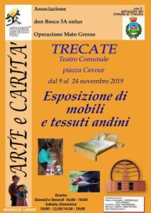 Trecate - Dal 9 al 24 novembre si terrà in Teatro comunale l’“Esposizione di mobili e tessuti andini” organizzata dall’associazione “Don Bosco 3A onlus, Operazione Mato Grosso” con il patrocinio del Comune di Trecate. La mostra, a ingresso libero, sarà aperta: giovedì e venerdì dalle 16 alle 19; sabato e domenica dalle 10 alle 12.30 e dalle 14.30 alle 19. Per informazioni consultare il sito www.donbosco3a.it.