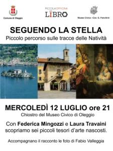 La presentazione del libro 'Seguendo la stella - Piccolo percorso sulle tracce della Natività', guida-percorso alla scoperta dei tesori del Cusio e del Lago d’Orta di Laura Travaini e Federica Mingozzi con fotografie di Fabio Valeggia, si tiene mercoledì 12 luglio alle ore 21 nel Museo Civico di Oleggio in Vicolo Chiesa 1 ad Oleggio. Ingresso libero. In collaborazione con la Libreria Piuccola Officina del Libro di Oleggio.