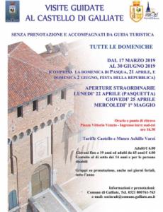 Galliate - Dal 17 marzo riprendono le visite guidate al Castello. Le visite, tutte le domeniche (compresa la domenica di Pasqua, 21 aprile, e domenica 2 giugno, Festa della Repubblica), possono essere fatte senza prenotazione e accompagnati da guida turistica. Aperture straordinarie: lunedì 22 aprile (Pasquetta), giovedì 25 aprile, mercoledì 1° maggio. Ritrovo ore 16.30, Piazza Vittorio Veneto - Ingresso torre sud-est (ultimo ingresso del Castello, verso il largo Remo Rabellotti).