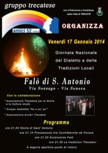 Trecate - La notizia era nell'aria, ma ad ufficializzarla è Giancarlo Antonietti, presidente del Gruppo Amici 52: "Falò di Sant’Antonio – Conservazione delle Tradizioni Trecatesi. Venerdì 17 gennaio con inizio alle ore 21 si terrà la tradizionale manifestazione del fuoco, in occasione della ricorrenza di Sant’Antonio Abate. Ricorre inoltre la giornata nazionale del Dialetto e delle Tradizioni locali, durante la quale saranno proposte attività per dare nuovo prestigio e impulso alle tradizioni trecatesi. Salvare il nostro dialetto è dovere di ognuno, anche con un adeguato gesto di sensibilizzazione. Il luogo stabilito è in via Sozzago - angolo via Seneca a Trecate. Questa manifestazione organizzata dal Gruppo Trecatese Amici 52 con il patrocinio e il contributo della Città di Trecate, vede la partecipazione di alcune associazioni attive sul territorio. In ordine casualel'Associazione Trecatese per la storia e cultura locale, l'Associazione Arcieri, la CRI di Trecate e il Gruppo dialettale Nü e pӧ pü che daranno ancora più ricchezza all’evento. Non mancheranno i famosi Frati di Sant’Antonio della "Cunfraternita da'Purscè", che reciteranno le lodi per sconfiggere il male nella figura del Diavolo. Una festa di buon auspicio per il corrente anno, all’insegna dell’allegria che si rinnova con una sempre più ampia partecipazione dei cittadini trecatesi oltre che visitatori dai paesi limitrofi. Cogliamo l'occasione per ringraziare anticipatamente tutte le realtà associative partecipanti e l'Amministrazione Comunale della Città di Trecate, per la fattiva e sollecita collaborazione. Sui siti www.gruppotrecateseamici52.it e www.lapiazzaditrecate.it verranno pubblicate le foto dell’evento".