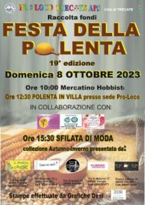 Trecate - Torna domenica 8 ottobre, per la sua diciannovesima edizione, la “Festa della polenta” organizzata dalla Pro Loco con il patrocinio della Città di Trecate. L’iniziativa si svolgerà dalle 10, a Villa Cicogna, con l’esposizione degli hobbisti. Il pranzo è previsto per le 12.30, con possibilità di asporto. Alle 15.30 sfilata di moda con la collezione autunno-inverno. Da non perdere!