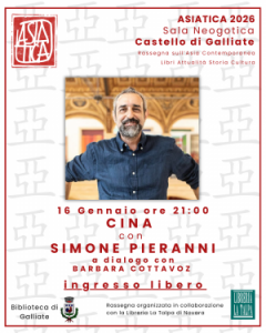 Galliate - Su iniziativa dell’Assessorato alla Cultura del Comune di Galliate, Simone Pieranni sarà ospite della Biblioteca di Galliate il prossimo 16 gennaio alle ore 21, nell'ambito della rassegna Asiatica. Rassegna sull'Asia Contemporanea. Libri, Attualità, Storia, organizzata in collaborazione con la Libreria La Talpa di Novara. L’incontro si terrà presso la Sala neogotica del Castello e il relatore dialogherà con la giornalista Barbara Cottavoz.