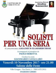 Trecate - Serata da non perdere quella prevista per Venerdì 10 novembre, dalle ore 21.00, nell’incantevole salone delle Feste di Villa Cicogna. L’Associazione Musicale Amadeus Kammerchor propone la seconda edizione di “Solisti per una Sera”. I cantanti del coro trecatese, accompagnati al pianoforte dal M° Paolo Beretta, propongono uno spettacolo emozionante e ricco di spunti e sorprese, condotto dal M° Gianmario Cavallaro. “Si tratta di un’occasione importante per i cantanti del coro – spiega il M° Cavallaro - i quali potranno sperimentarsi nel ruolo di solisti e mettersi alla prova, vincendo la propria paura di affrontare il pubblico da soli e cementando, così, il proprio senso di appartenenza a questa nostra realtà musicale che è diventata, nel tempo, una seconda famiglia”.