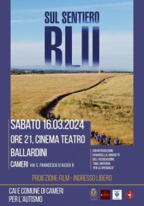 Cameri - Un piede dopo l’altro, un gradino di indipendenza e socialità dopo l’altro: sono i 200 km percorsi in 9 giorni dai protagonisti di “Sul sentiero blu” (2022), il docufilm che sarà proiettato sabato 16 marzo 2024 a Cameri, alle ore 21 presso il Cinema Teatro Ballardini (via S. Francesco D’Assisi 9). Introduce la serata Marcella Longhetti dell’associazione “Una lanterna per la speranza”. L’iniziativa, a ingresso libero, è organizzata da CAI Cameri in collaborazione con L’Assessorato alla cultura e commissione biblioteca. In “Sul sentiero blu” un gruppo di ragazzi autistici, insieme ai loro medici ed educatori, percorrono oltre 200 km a piedi in 9 giorni sull'antica via Francigena. Un cammino di crescita, tra fatica e divertimento, in cui affrontano ed imparano a gestire emozioni e difficoltà grazie a specifici programmi abilitativi per sviluppare le competenze sociali. Oltre che scientifica, si è trattata quindi di un'esperienza profondamente umana volta a migliorare le relazioni delle persone autistiche. I partecipanti devono infatti adattarsi al nuovo ambiente e cercare un modo per convivere, alla scoperta della loro indipendenza.