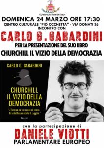 Romentino - Appuntamento da non perdere: domenica 24 marzo,alle ore 17.30, torna a trovarci Carlo Giuseppe Gabardini per presentare il suo ultimo libro "Churchill il vizio della democrazia". "Insieme a lui - annuncia il sindaco, Alessio Biondo - a parlare del senso dell'Europa, avremo il piacere di ospitare Daniele Viotti, parlamentare europeo (Pd) che torna sempre a Romentino con piacere".