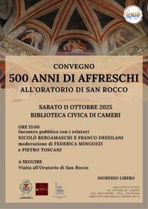 Cameri - Il 3 giugno di 500 anni fa fu completato dal pittore novarese Giovanni Angelo Canta il ciclo di affreschi all’interno dell’oratorio di San Rocco, a Cameri. Mezzo millennio dopo il pregio artistico dell’oratorio è fulcro del convegno “500 anni di affreschi all’Oratorio di San Rocco”, che si terrà sabato 11 ottobre dalle ore 15 presso la Biblioteca civica di Cameri (via Novara 20). Saranno relatori il professor Nicolò Bergamaschi e il professor Franco Dessilani e la partecipazione in qualità di moderatori di Federica Mingozzi e di Pietro Toscani.