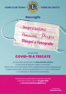 Trecate - "E' intenzione dei soci Lions - spiega Piera Albertone del Lions Club Ticino Torre del Basto - nella persona del loro presidente dott. Mario Mocchetto, realizzare un libro che ricordi il tempo del Covid19 a Trecate. L'invito è rivolto a tutta la popolazione trecatese a trasmettere materiale fotografico, disegni, pensieri e poesie a documentazione e a ricordo di un periodo che certamente passerà alla storia per la sua unicità e tragicità. Si precisa che possono partecipare tutti i cittadini trecatesi con proprio materiale a nome dell'autore o, a richiesta, in maniera anonima inviando la documentazione inerente all'iniziativa al seguente indirizzo di posta elettronica: ticinotorredelbasto@libero.it entro il 31 luglio 2020. A tal fine si trasmette la locandina che verrà affissa nei maggiori negozi della città ed un testo di accompagnamento con preghiera di diffusione tra le parti interessate. Il materiale raccolto sarà ordinato e pubblicato in un libro, depositato e consultabile presso la Biblioteca Comunale e distribuito a richiesta. Si ringrazia fin d'ora chi vorrà collaborare all'iniziativa. Ognuno delle parti interessate è autorizzato a pubblicare in toto il testo di accompagnamento o a trarne informazioni".