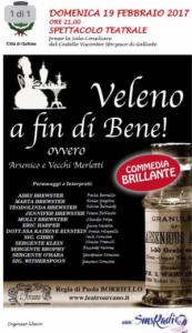 Galliate - C'è grande attesa per lo spettacolo teatrale che va in scena domenica 19 febbraio alle 21 nella splendida sala consiliare del Castello Visconteo Sforzesco di Trecate. Il gruppo Arsenico e vecchi merletti presenta una commedia brillante dal titolo 'Veleno a fin di bene'. Sul palco vedremo: Paola Borriello, Sonia Grigolon, Silvia Bernardi, Teresa De Nicola, Claudio Volpe, Giusy Vastola, Sonia Filippelli, Jack Concina, Cinzia Premoli, Riccardo Verrone, Gaudenzio e Giacomo Concina. Regia di Paola Borriello