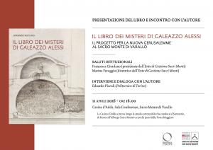 Varallo Sesia - Presentazione del libro “Il libro dei misteri di Galeazzo Alessi” sabato 11 aprile alle ore 16 alla Casina d’Adda, Sacro Monte di Varallo. Un appuntamento da non perdere per chi ama la storia, l’arte e l’architettura dei Sacri Monti. Il volume di Lorenzo Fecchio, dedicato ai misteriosi progetti di Galeazzo Alessi per una “Nuova Gerusalemme”, non è solo un libro di studio: è una chiave per comprendere l’origine stessa del linguaggio architettonico e simbolico che ha plasmato il Sacro Monte di Varallo e, in seguito, tutti gli altri Sacri Monti alpini.