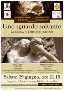 Scopello - Una serata di teatro sotto le stelle: sabato, 29 giugno, a Scopello verrà messo in scena "Uno sguardo soltanto", spettacolo teatrale-musicale con la Compagnia della Civetta e l'Orchestra e il Coro "Giulia Bracchi": la storia è quella, romantica e commovente, dei due mitici amanti, Orfeo ed Euridice, raccontata in uno spettacolo adatto a tutti che, tra recitazione e musiche dal vivo, segue il filo dell'amore. Lo spettacolo si terrà sul sagrato della chiesa parrocchiale di Scopello, una cornice molto particolare (in caso di maltempo sarà rappresentato all'interno) e inizierà alle ore 21.15.