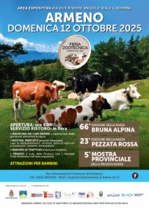 Armeno - Torna ad Armeno la Fiera Zootecnica con i suoi appuntamenti ormai tradizionali: la 66^ edizione della razza Bruna alpina, la 23esima edizione della razza Pezzata rossa e la 5^ edizione della Mostra Provinciale della Pezzata Rossa. Si tratta della manifestazione più antica della provincia – seconda in Piemonte per importanza - che è divenuta negli anni l’evento più importante di Armeno sia per la valorizzazione del lavoro degli allevatori e dei produttori locali, sia per il ruolo che ha sempre svolto nel tenere vivo e sostenere l’interesse verso questo settore. Prevede anche un approfondimento sulla razza Piemontese con una presentazione nel pomeriggio, dedicata sia alla Piemontese che alla Bruna Alpina Originale.