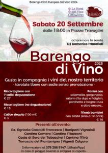 Barengo - Barengo si prepara a brindare con la 2ª edizione della “Barengo diVino”, evento enogastronomico organizzato da Pro Loco Barengo, in programma sabato 20 settembre a partire dalle ore 18 in piazza Travaglini. Una serata all’insegna dei sapori e dei vini del territorio, con tavolate in piazza per un’aperi-cena e la musica travolgente di DJ Domenico Marafioti, che accompagnerà il pubblico fino a tarda sera. L’ingresso è libero e non è richiesta prenotazione.