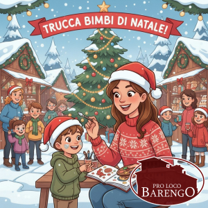 Barengo - Nuovo evento di Pro Loco Barengo che si svolgerà domenica 30 novembre in piazza Travaglini. Tornano infatti i Mercatini di Natale al coperto: Mercatini (al coperto) con vin brulé e truccabimbi sotto al tendone in piazza Travaglini dalle ore 10 del mattino sino al pomeriggio e dalle ore 14.30 Truccabimbi, the caldo e vin brulé. Ti aspettiamo! Vin brulé e the caldo sono offerti dal Rione San Rocco. Truccabimbi per i più piccoli offerto dalla Pro Loco Barengo.