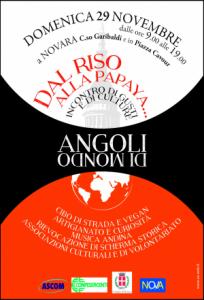 Novara - Sfidando i rigori dell’autunno avanzato, domenica 29 novembre saremo in corso Garibaldi a Novara, dalle 10 alle 19, per l’evento “Angoli di mondo”, incontro di gusti e di culture, con degustazioni, vendita di prodotti artigianali e tipici e momenti di intrattenimento. Troverete bancarelle di prodotti ortofrutticoli freschi, gastronomia siciliana, salumi, formaggi, delizioso pane cotto nel forno a legna, frutta secca, oltre a prodotti dell’artigianato andino e africano, articoli con materiale riciclato, prodotti cosmetici e altre simpatiche proposte. Saranno dei nostri i Vegan Pirates con le piadine e il sushi vegani, il Gruppo Giovani Musulmani di Novara con prodotti della cultura e della gastronomia araba, la band con musiche peruviane, il gruppo della Commenda di Galliate in costume che si esibirà durante la giornata in rievocazioni storiche, le ragazze che si esibiranno nella danza del ventre. Ci sono tutti gli ingredienti per prolungare la consueta passeggiata in centro fino al corso Garibaldi, la via che a Novara porta alla stazione ferroviaria e che per un giorno si colora di Angoli di mondo. L’evento è organizzato da Consorzio Acquisti Terziario, in collaborazione con Ascom Novara, con Novaeventi e con il patrocinio del Comune di Novara.