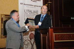 La chiusura della prima parte dell’assemblea è stata caratterizzata dal ricordo del vicepresidente Giovanni Fasola, scomparso nel dicembre 2013. Alla sua memoria è stata affidata una targa in vetro, opera dell’artigiana Soheila Dilfanian (che ha curato anche la realizzazione dei premi Artifex) ritirata dal Paolo Rovellotti, past president della Camera di commercio di Novara, che ha ricordato con poche e commosse parole la figura umana e professionale di Giovanni Fasola, che è stato anche presidente di EVAET, azienda speciale della Camera di commercio di Novara.