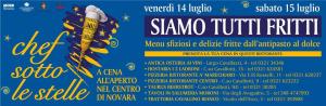 Novara - E’ il fritto, in tutte le sue varianti, il protagonista del terzo appuntamento con “Chef sotto le stelle”, l’evento gastronomico promosso da Confcommercio Alto Piemonte con i ristoratori del centro di Novara. Stasera e domani i ristoranti allestiranno spazi esterni o amplieranno i loro dehors per accogliere i buongustai che potranno scegliere gli sfiziosi piatti della serata a base di fritto (dal classico cuoppo napoletano alle verdure di stagione in pastella ai dolci fritti) oppure spaziare nei menu proposti abitualmente dagli chef. Le otto cene dell’estate 2017, programmate una volta al mese, da maggio a settembre, valorizzano l’offerta della cucina locale e il centro città. I ristoranti che partecipano a “Siamo tutti fritti” sono: in corso Cavallotti Antica Osteria ai vini, Pizzeria Centro, Hostaria I 2 ladroni, Taurus Beerstrot; in vicolo dell’Arco Trattoria Cavallino Bianco; in piazza Cesare Battisti Pizzeria A’ marechiaro. La novità di questa sera è l’esposizione di auto storiche a cura del Club ACI storico Novara e dei suoi appassionati soci, in collaborazione con associazioni automobilistiche e culturali del territorio. Le auto si potranno ammirare all’inizio di corso Cavallotti e in largo Cavallazzi. Il prossimo e ultimo appuntamento con Chef sotto le stelle sarà il 15 e 16 settembre con MILLE E UN FORMAGGIO.