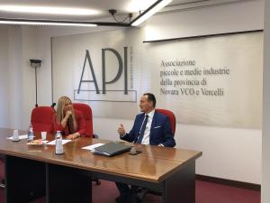 Novara - Giovedì 16 maggio, a seguito del Consiglio Direttivo dell’Associazione Piccole e Medie Industrie delle province di Novara, VCO e Vercelli, i Consiglieri API hanno incontrato il Candidato alle elezioni regionali al Centro Destra Alberto Cirio che ha illustrato il suo programma elettorale e i Consiglieri dell’Associazione hanno presentato le loro istanze. Riguardano principalmente: TAV e Terzo Valico, l’effettiva realizzazione della Città della Salute e lo sblocco dei cantieri per la crescita: dobbiamo potenziare le infrastrutture, migliorare la viabilità nelle nostre province e mettere in sicurezza i corsi d’acqua per limitare i fenomeni di esondazione, frane e dissestamenti soprattutto nel Verbano Cusio Ossola. Le richieste continuano con il sostegno alle piccole e medie industrie per i processi di internazionalizzazione attraverso voucher, il sostegno al welfare e alla formazione, fino alla realizzazione di progetti di formazione con ricadute sistemiche sulle PMI, veicolate da soggetti aggregatori.