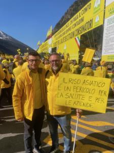 Novara - Dalle cosce di prosciutto alle cagliate per fare la mozzarella, ogni giorno passano dal Brennero migliaia di tonnellate di prodotti alimentari stranieri che, in assenza di adeguata trasparenza, alimentano inganni commerciali, rischi sanitari e danni economici alle imprese agricole, schiacciando prezzi, redditi e margini di export, in un momento peraltro già difficile a causa dei rincari dei costi legati alla guerra in Iran. È l’allarme lanciato dai diecimila agricoltori della Coldiretti giunti al Brennero lunedì 27 aprile da tutte le regioni italiane insieme al segretario generale Vincenzo Gesmundo e al presidente Ettore Prandini. Coldiretti Novara-Vco è stata presente con una folta delegazione formata da agricoltori, giovani imprenditori e dirigenti insieme al Presidente Fabio Tofi e al Direttore Luciano Salvadori, per difendere la salute dei cittadini e il reddito delle aziende dall’invasione di cibo straniero che finisce spesso sulle tavole spacciato come italiano.