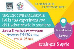 Novara - Il Centro Servizi per il Territorio Novara VCO annuncia l'apertura delle selezioni per il nuovo progetto di Servizio Civile Universale denominato 'NUOVE RI-GENERAZIONI'. Un'iniziativa pensata per offrire a due giovani del territorio l'opportunità di vivere un anno di cittadinanza attiva, formazione professionale e supporto diretto al mondo del Terzo Settore. Il progetto si rivolge a ragazzi e ragazze di età compresa tra i 18 e i 28 anni desiderosi di mettersi in gioco per 12 mesi (con avvio previsto il 18 settembre 2026). Le sedi operative coinvolte sono due: un posto disponibile presso la sede di Novara e uno presso la sede di Domodossola.